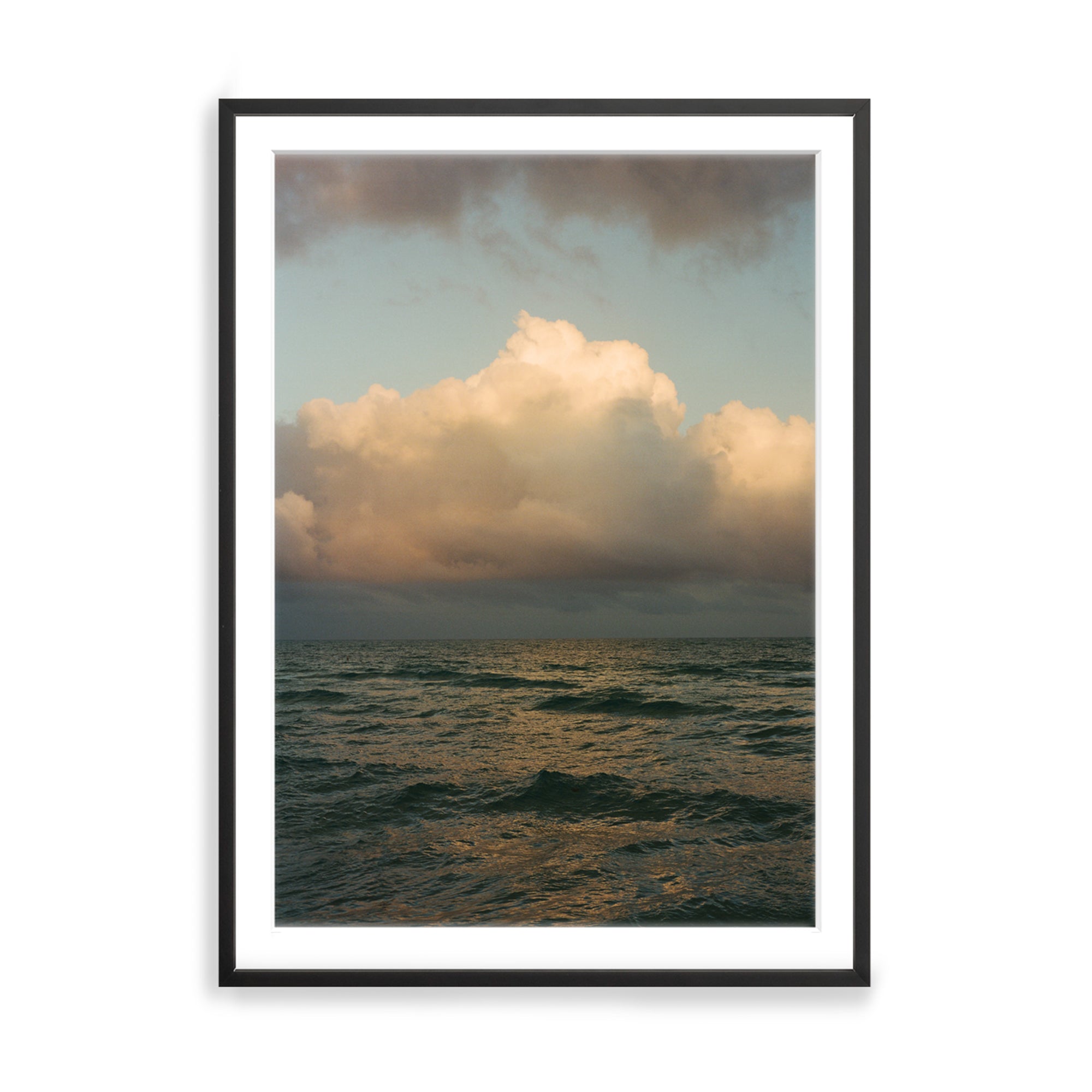 We watched as this magnificent cloud floated graciously over the warm Miami ocean threatening to deliver water back into the sea from where it came. We've always found clouds mesmerizing and this one lording over the sea, catching the last light of the day, putting on one more magical show before night set in was one for the books, or the walls!
